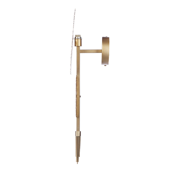 E punuar me një hije qelqi të acaruar dhe e përfunduar me metal të ngrohtë me nuancë ari, llamba shpërndan dritën butësisht nëpër mur, duke krijuar një atmosferë të qetë dhe mikpritëse. Dizajni i saj i ekuilibruar e bën ideale për dhomat e ndenjes, dhomat e gjumit, zonat e ngrënies ose ambientet e hoteleve butike ku ndriçimi i ambientit dhe interesi vizual kanë rëndësi njësoj.